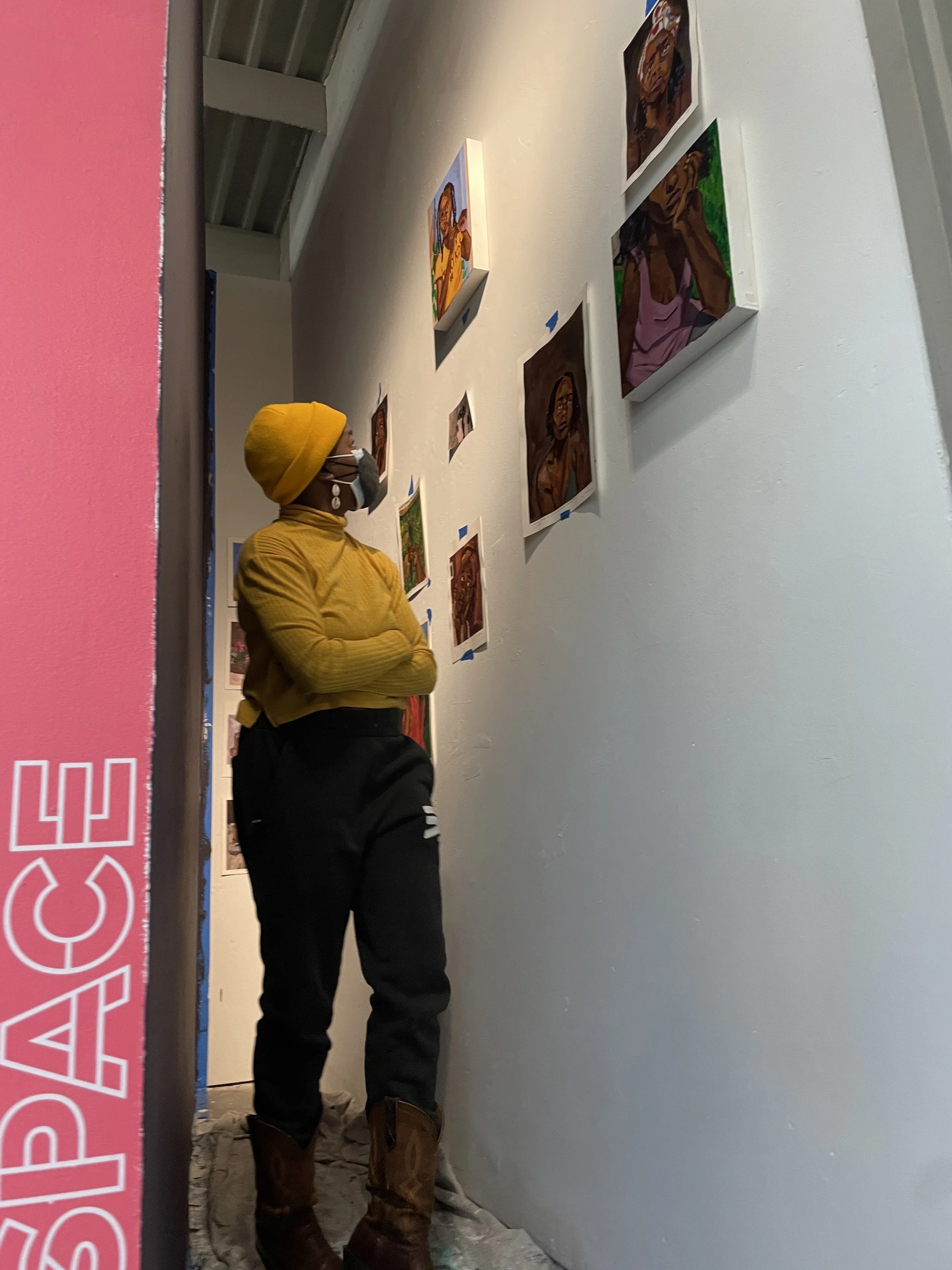 Raised across the South, Ebony connects to her roots by connecting to the love and legacy of Black folx, who have had the audacity to create while navigating life on this land. When she is not painting, Ebony enjoys grounding in nature, learning alongside children, and freedom dreaming.